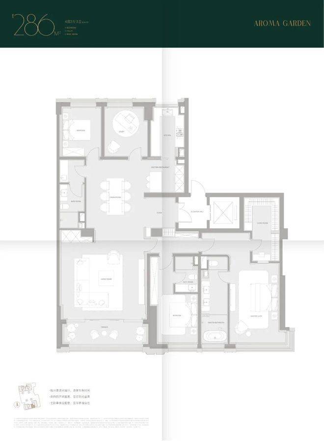 主卧系统:豪华主卧套房,朝南采光,连接独立书房,布局更合理。