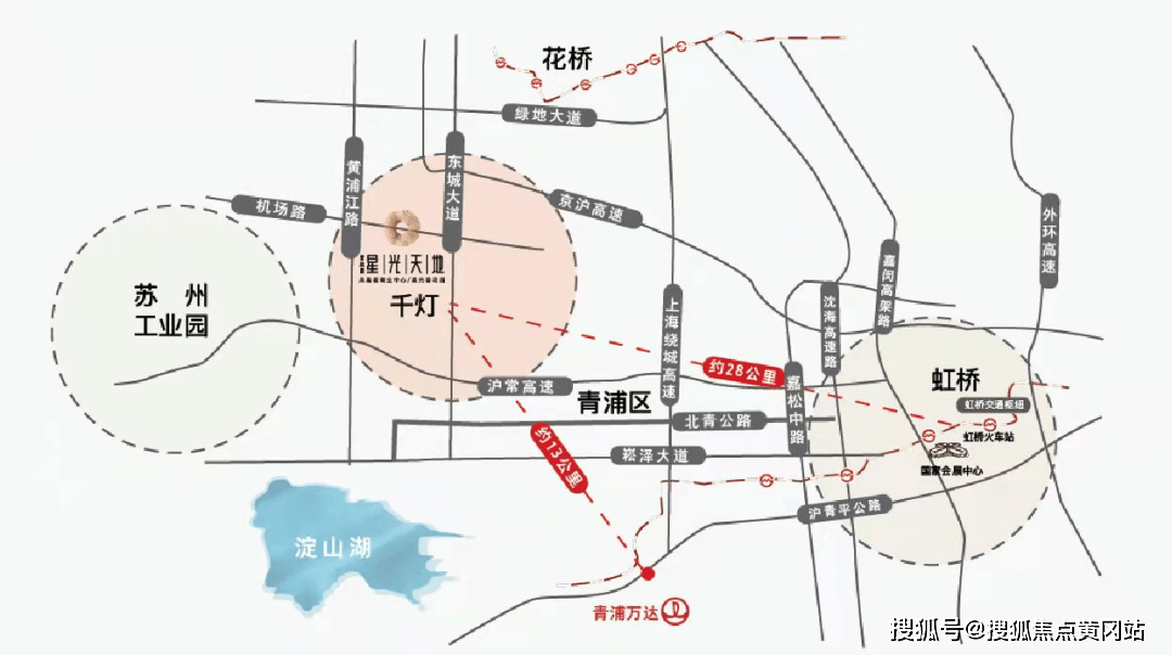 <区位腹地>距高速出入口4公里约8分钟,距昆山南站9公里约15分钟,距花桥地铁站14公里约20分钟,距青浦奥特莱斯、产业园区18公里约25分钟,距虹桥枢纽30公里约40分钟,距上海人民广场50公里约1小时