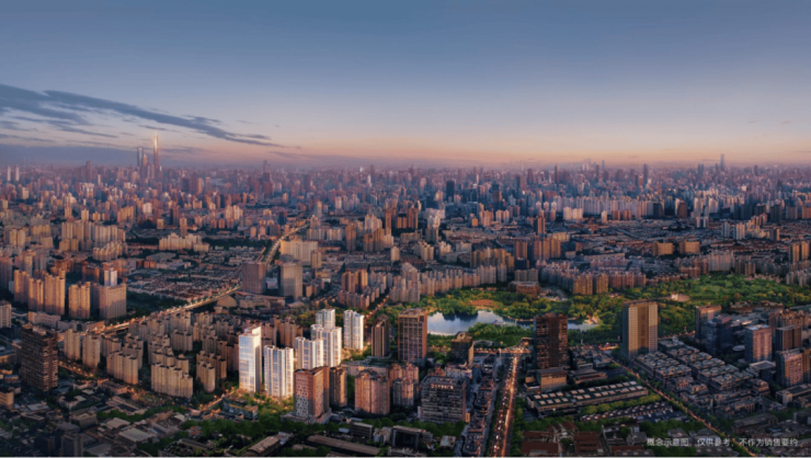 中建玖上琅宸项目位于静安区大宁全域中央公园CBD板块,是近年来上海核心区罕见的方正大体量土地,且南向正对浦西中央城区最大的大宁公园景观资源。项目总建筑面积约9.32万平方米,规划涵盖高端住宅、办公及配套等多重业态。项目汇聚line+孟凡浩、GTS蓝颂宋淑华、CCD郑忠及中建体系内优秀设计力量,立足国际视野,打造“金镶玉制”陶板立面(部分)、最高约10米全域架空、约3000平方米下沉庭院会所、连续约12米转角无柱化设计(部分户型)、地下中央车站酒店式归家设计等一系列中建玖合首发产品力,全方位回应当代人的居住向往。