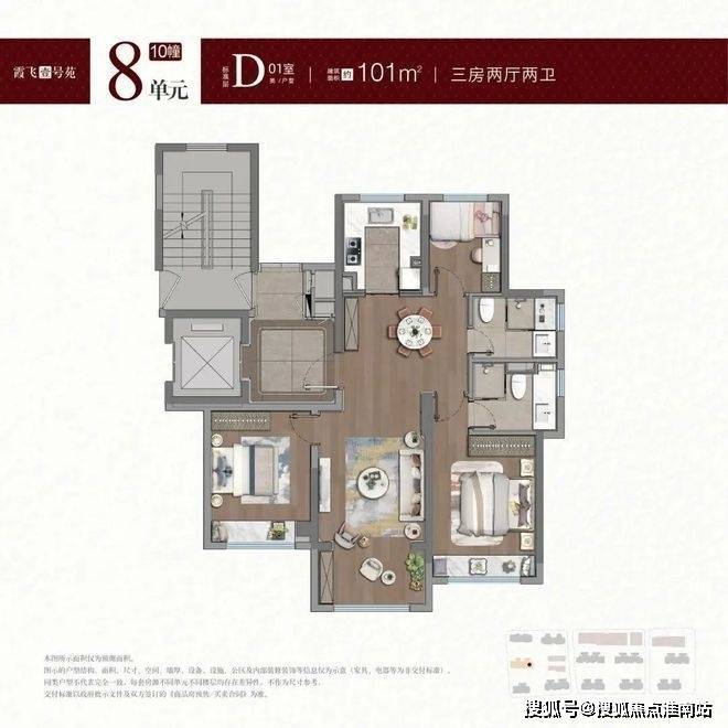 建面约100-101㎡户型,拥类独立电梯厅,无连廊+飞机户型南北通透。