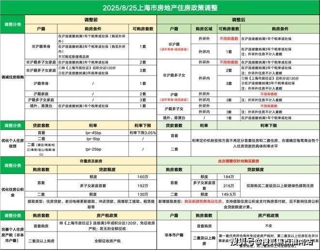 为更好满足居民刚性住房需求和多样化改善性住房需求,促进房地产市场平稳健康发展,8月25日,市住房城乡建设管理委、市房屋管理局、市财政局、市税务局、人民银行上海市分行、市公积金管理中心等六部门联合印发 《关于优化调整本市房地产政策措施的通知》 (以下简称《通知》),包括 调减住房限购、优化住房公积金、优化个人住房信贷以及完善个人住房房产税等政策 。《通知》自2025年8月26日起施行。