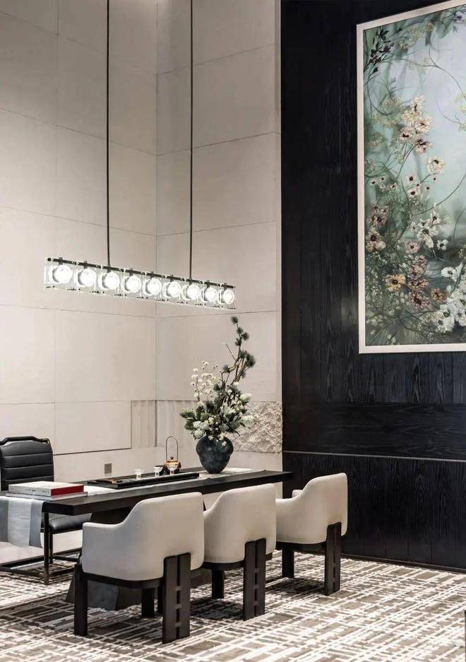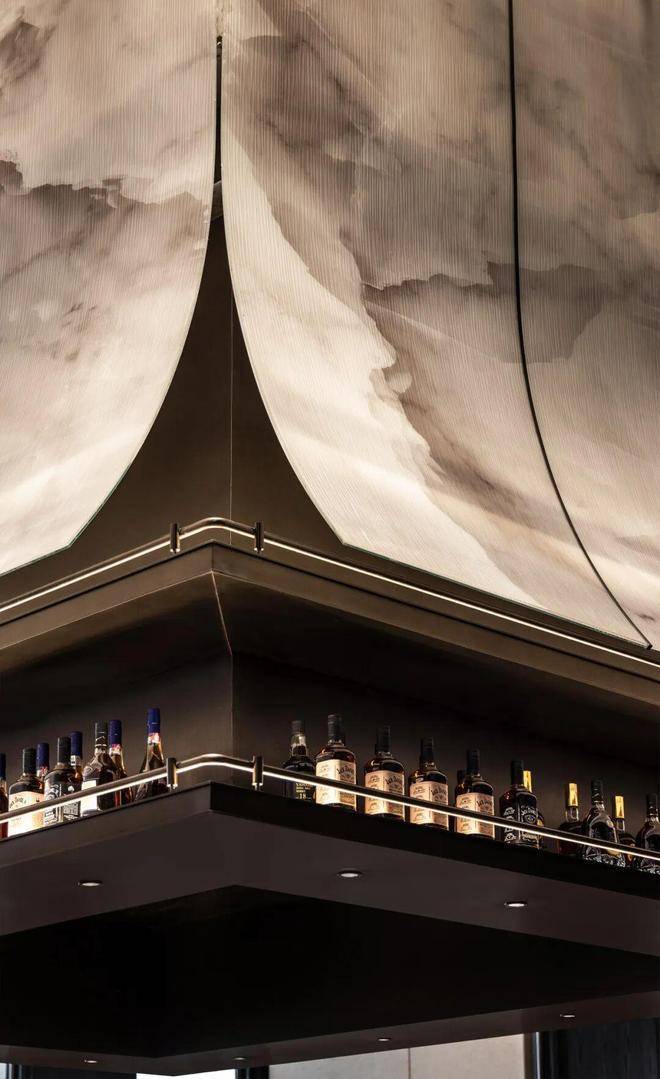 狮山金茂府将每一个细节打造极致,比如会所水吧台的艺术吊顶,会发现吊顶不仅做了飞檐翘角,甚至还是一幅水墨山水画。