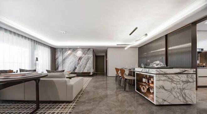 从精工细节来看,岩板电视背景墙、定制成品餐边柜、主卧皮革硬包床头背景墙...处处体现出精致感与奢华感。