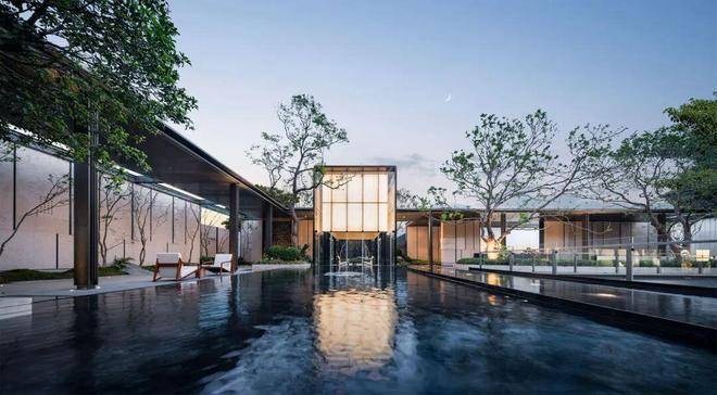 府系3.0打造传统归家礼序和现代度假美学融合的景观体系,以自然无界构建舒适静谧的人居环境。