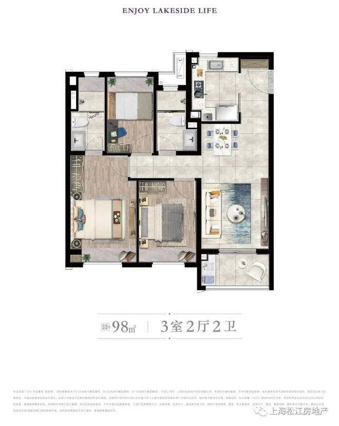 建筑面积约98㎡三房,总价507起