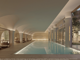 整个会所的空间运用了大量高难度工艺的曲线与曲面拱顶元素,呼应虹口港与黄浦江的蜿蜒曲折。从会所的艺术沙龙空间,到会所无边泳池与下沉庭院,都可以看到曲线拱顶审美元素的延续,将会所空间的调性提升到了全新高度。