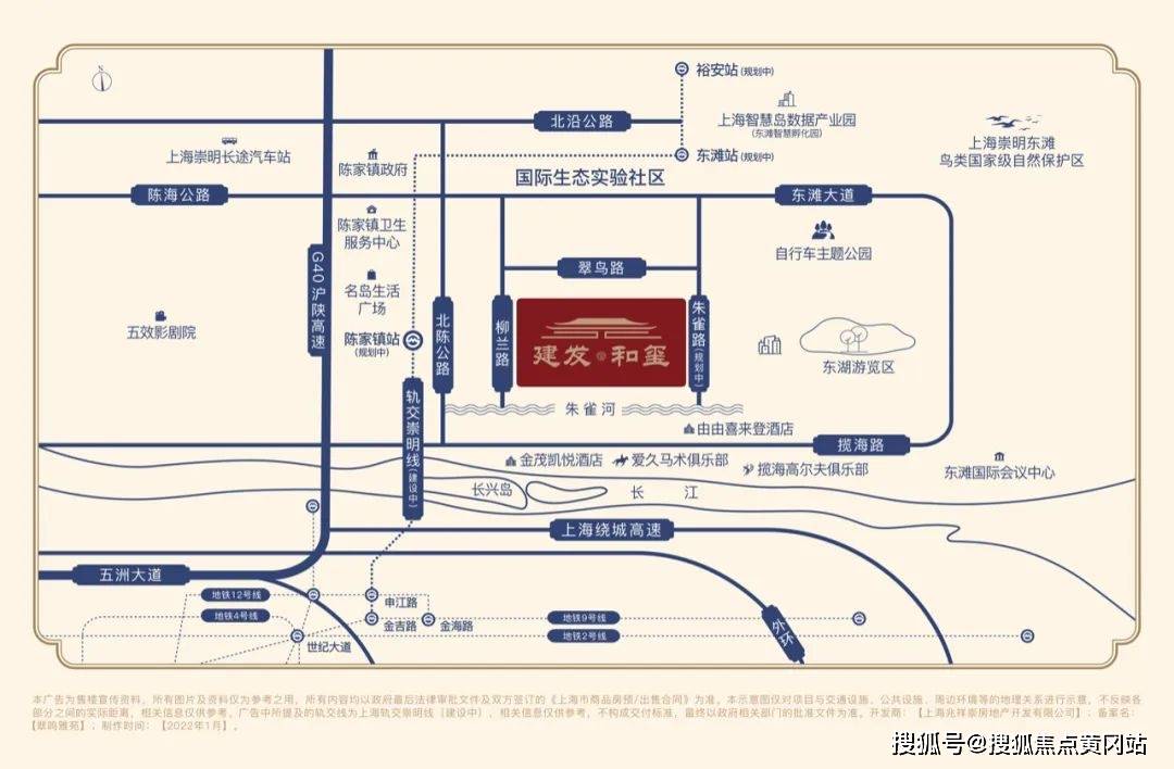 建发·和玺位于东滩国际实验生态社区,紧邻轨交崇明线陈家镇站。