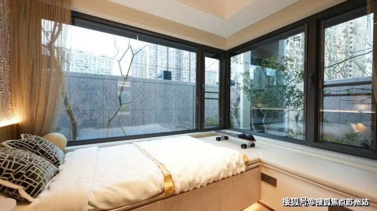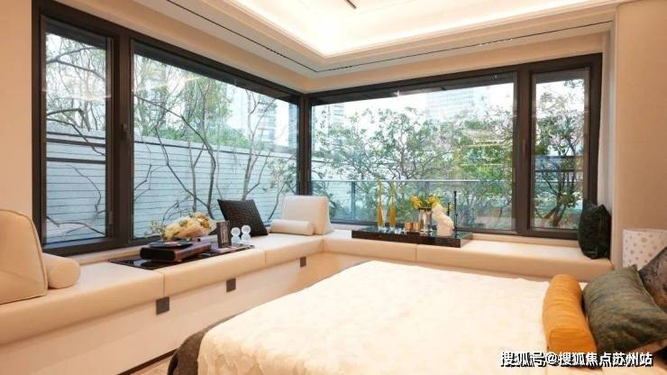阳台和主卧采用270°的L型环幕设计,主动拥抱更丰富的园林景致。