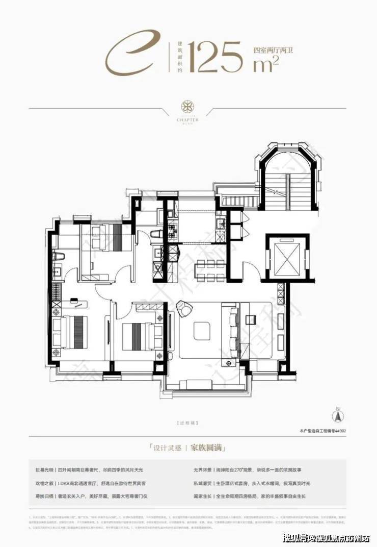继承了270°阔景飘窗,搭配四叶草户型。