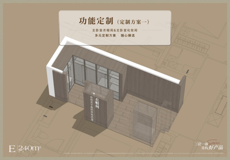 项目在硬装阶段就为业主可能需要的功能进行硬件预埋。以240㎡主卧衣帽间为例,提供从“整体收纳”到“嵌入化妆台,mini bar”的多元方案。这种 “让空间匹配生活,而非生活将就空间” 的设计思维,正是顶奢产品力的核心体现。与市场上常见的"伪定制"不同,外滩瑞府的功能定制真正实现了"按需设计",而非简单的"选项勾选"。