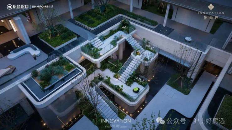 不夸张的说,看过无数个“下沉式庭园”,招商序仍然拿出了很有创意的设计想法,创新式打造4层悬浮式下沉园林,整个立体庭园,汲取了海派大师邬达克封笔之作「曾经的远东第一豪宅-吴宅」精髓,力求“宅、园、水、院”立体交融,借天地之景,纳四时之变,将人间春色凝于一园。