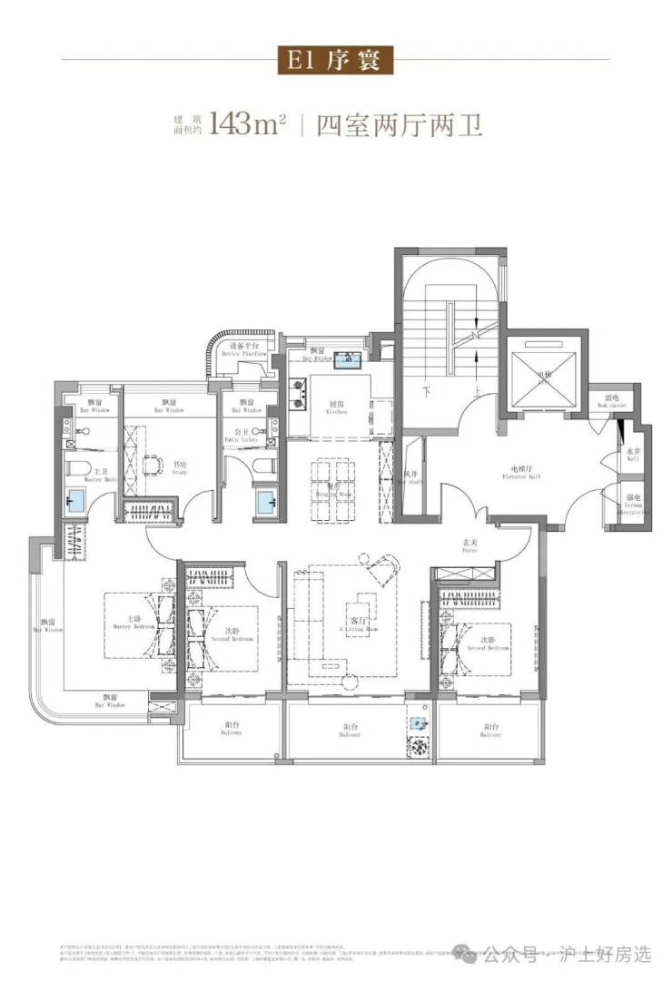 143㎡四房(南北通透,南向采光面13.8米)7。