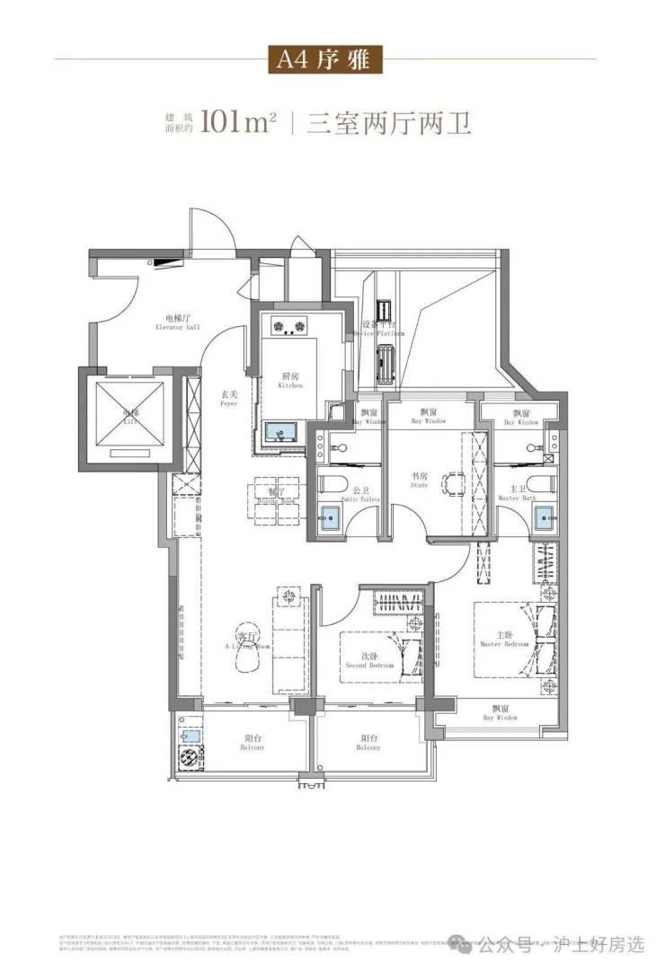 100㎡户型实现“三阳台+真实三卧室”,厨房可容纳双开门冰箱5。