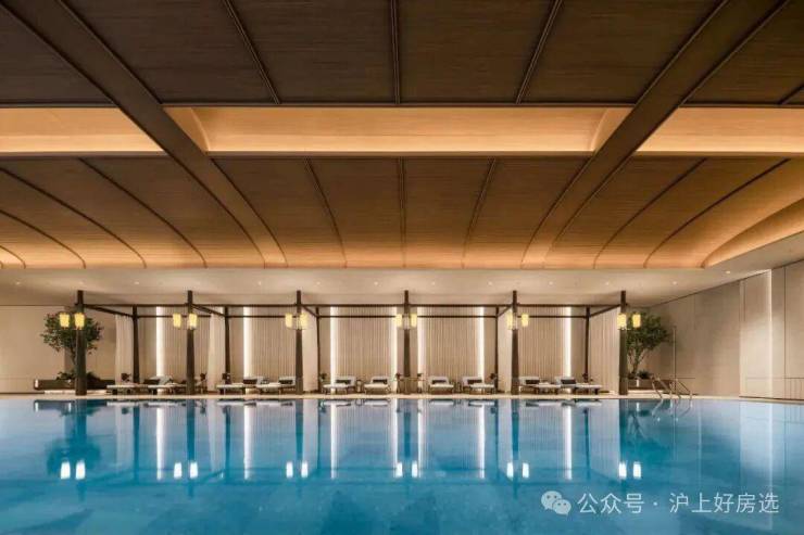 最让我心动的是这个无边泳池!招商序以“室内外自然无界”的设计手法,将无边泳池与庭院美景在视觉上连成一体,当阳光映照跃动的蔚蓝,业主畅游的同时还能包揽庭园诗意;深色木架构撑起白色帏幔,池边躺椅的设计也极具豪华酒店的优雅与尊贵,穹顶则延续着海派穹顶的经典设计元素,以细腻的木纹铝板打造。以往只在奢华度假酒店的体验在家楼下的会所也能拥有!