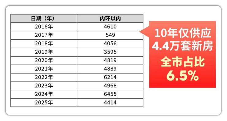 ②近10年,内环的新房供应占全市供应的约6.5%。