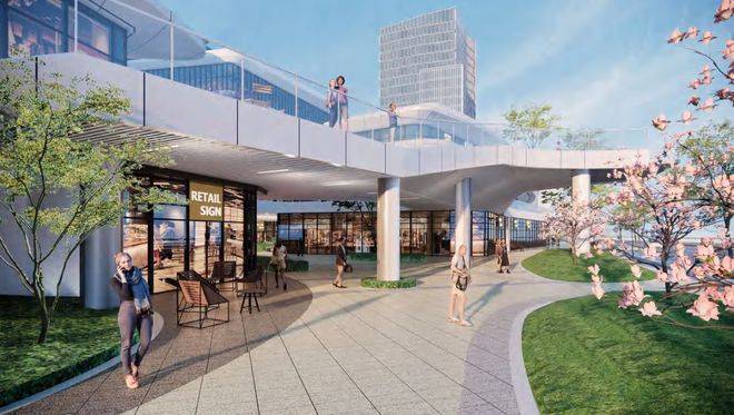 一来,宁波文创港宝龙不仅拥有丰富滨水资源,还背靠政府打造的江景生态公园。项目引入滨江公园空中连廊,二层的七条空中连廊通向外部江景公园抵达七座景观平台,串联商业岛与滨水景观公园的点与面,形成了现代城市—生态自然的有机结合。