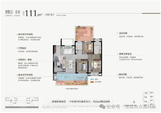 【产品信息】建筑面积约95㎡、108㎡、111㎡宽境奢邸