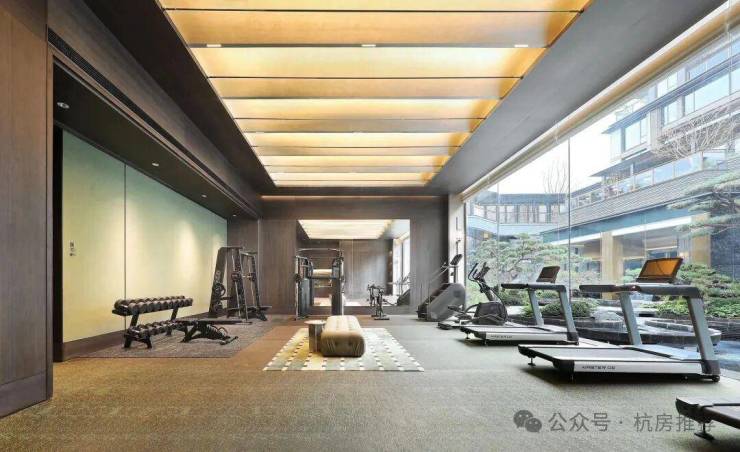 ▍出门即城市,步行即公园,咏月望庐是杭州在售的一线水景房中,难得的直面水岸,中间甚至没有车行道路分隔的项目,交叠的露台、院子和超高地下室,将白鹭、睡莲和绿洲一并“私藏”。