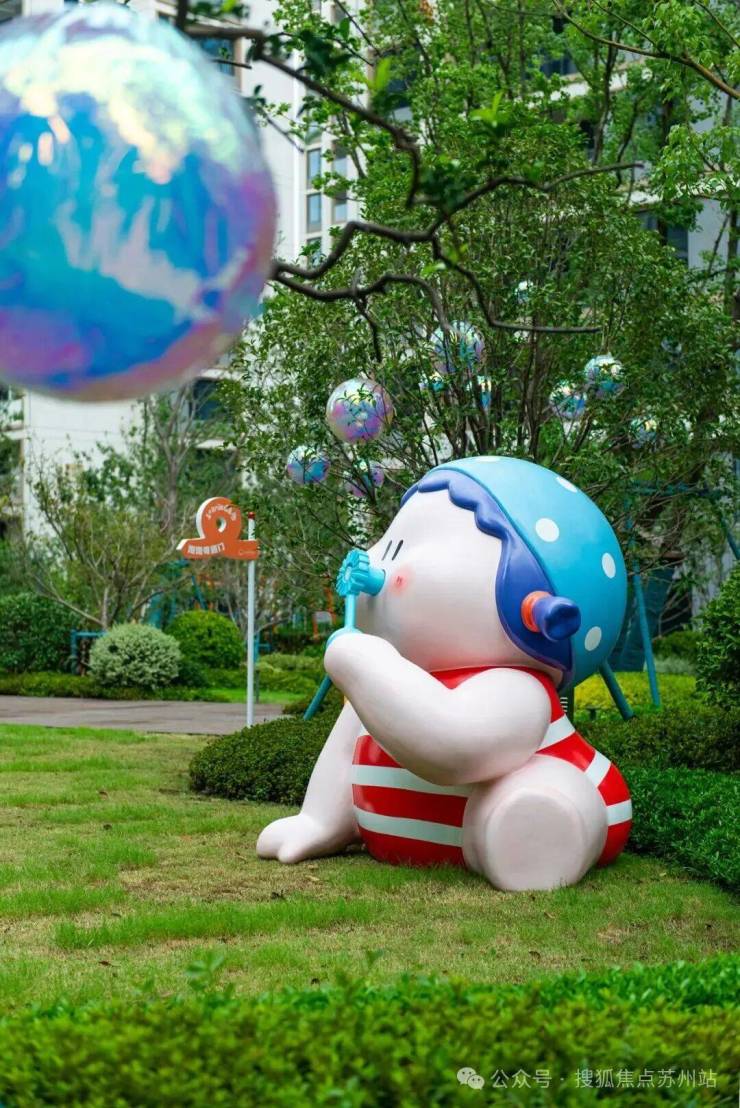 置于草地一角的陆家嘴乐居生活服务官“陆小乐”陪伴每一个孩子健康成长。不远处的互动泡泡机,按钮一按,泡泡漫天飞舞,瞬间开启能让孩子们兴奋尖叫的梦幻时刻。