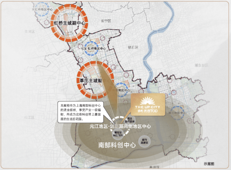从漕河泾板块,到张江板块,再到闵行主城板块,南部科创中心作为成为上海面向全球又一大科创发展引擎,规划“南紫竹,北莲花”双核发展引擎,是闵行未来发展的重中之重。项目西侧是漕河泾颛桥科技绿洲,周边还汇集了大零号湾、马桥人工智能创新实验区、吴泾战略留白区3大国家级产业区。