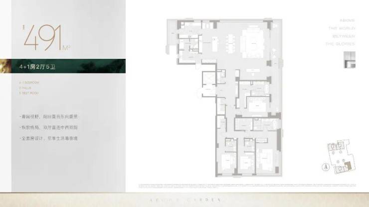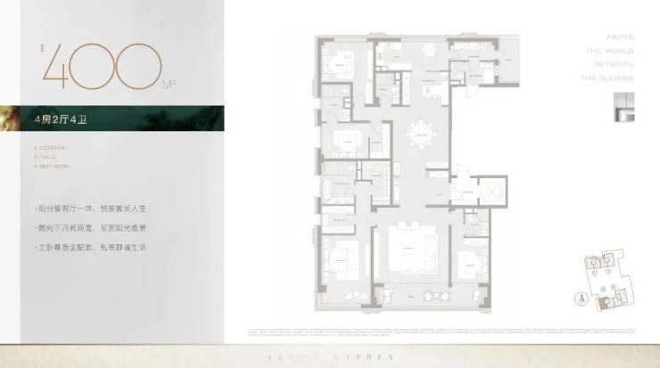 豪华主卧套房设计(户型为全套房设计),大横厅设计,明亮、通透,客餐厅南北分布,动静合理,超大家政空间满足高端居家生活及收纳需求。