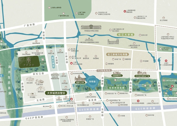 教育医疗:东华大学附属实验学校、松江区第二实验小学等优质教育资源环绕,3公里内可达三甲医院上海市人民医院。3