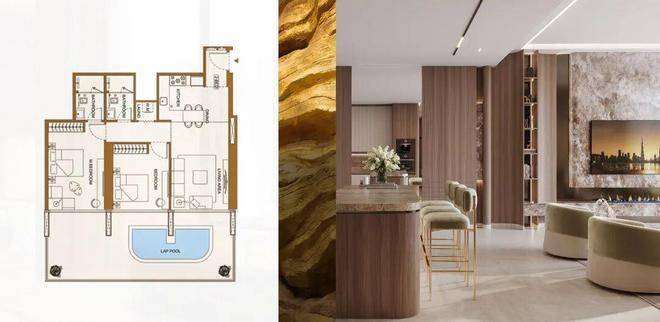 BinghattiLuxuria 俯瞰JVT公园、The Springs和朱美拉群岛的绿意景观,营造出宁静宜居的环境。