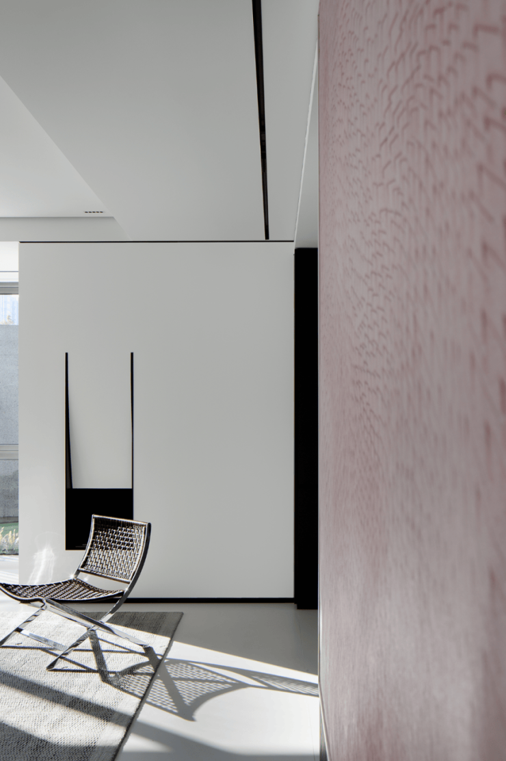 楼梯选用了纯白色,光是唯一的装饰品,在寻常中展现着空间最为纯粹的美。