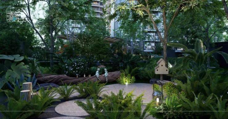 九园:潮汐花园(社区外围口袋花园)、浔湾秘境(会所式入户)、社交剧场、漫游森境、下沉会所、阅读花园、社交花园、自然博物馆。