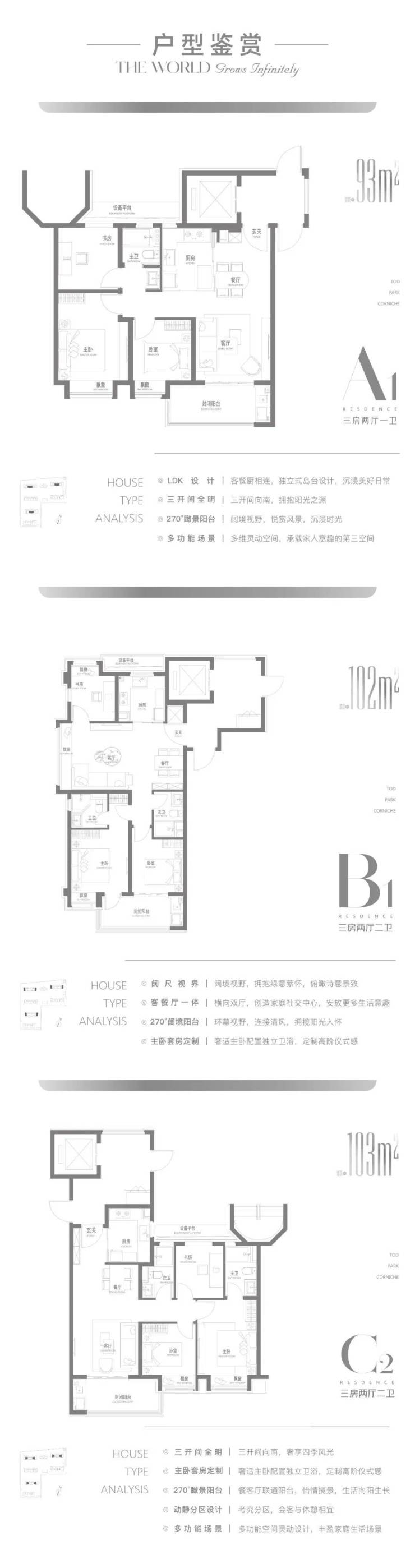 3、 三居室:公房面积:60-90平米;商品房面积:110-150平米;
