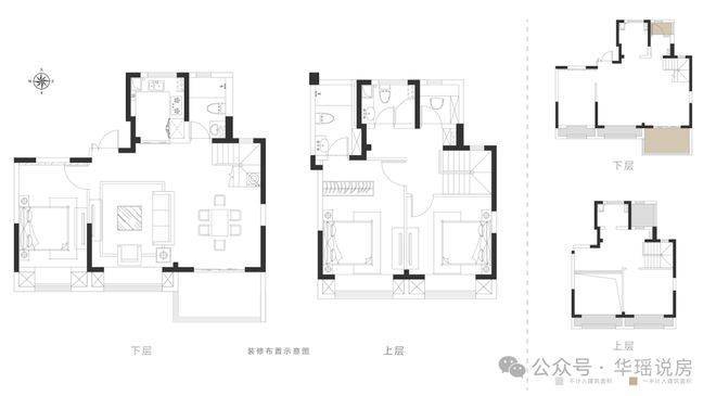 这款户型和很多叠墅一样,上下均两开间朝南,布局更加注重功能性。
