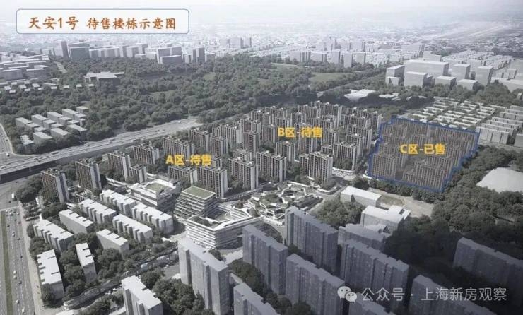 根据天安1号的公布方案来看,将分为A、B、C三个部分,共建设48幢,最高13层的住宅楼,整体容积率为1.94,建筑密度为30%、绿地率35%。