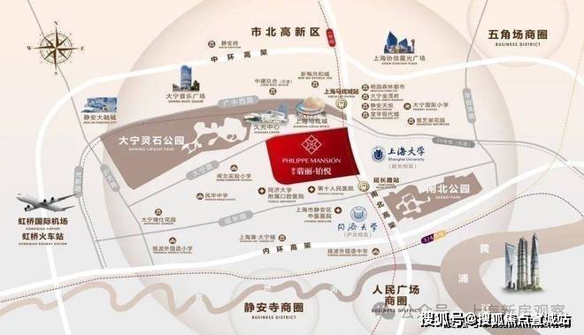 辐射商圈:人民广场商圈、静安寺商圈、徐家汇商圈、五角场商圈