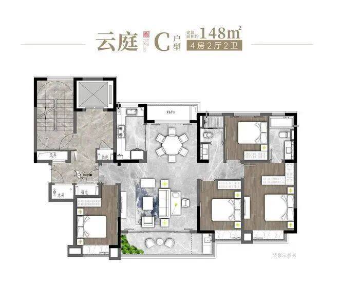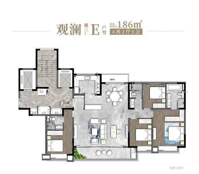 部分户型具有标准层高设计,户型方正,空间实用性高,有独立玄关提升隐私性。4 室的设计适合改善型人群,2 卫的配置可避免抢卫生间的尴尬,保证主人生活的私密性。餐厅和客厅无缝连接,营造出局部大空间的体验。房间动区简约大气,提供舒适的生活娱乐氛围。部分主卧采用套房设计,扩大了卧室面积,配有独立的主卧卫生间,提升了主人的居住体验。部分户型的主阳台朝南,若装配落地窗,采光较好,且户型朝南的房间较多,可充分享受 “冬暖夏凉” 的舒适体验,同时南北通透,厨卫全明,室内采光无死角。