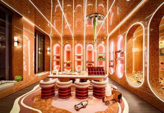 当整面落地玻璃将天光云影与园林叠石揽入怀中,模糊了室内外的界限,玫红座椅成为空间内的高光——它承载着江南手工艺的细腻温度,又以高饱和度的克制绽放,暗合「隐贵美学」。
