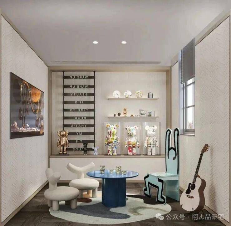 北向有一个灵动空间可随需求切换,孩子小时候是亲子手工区,长大后变为书房,灵活适配家庭成长周期。