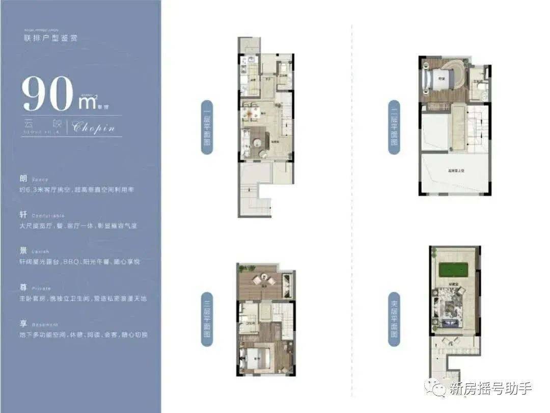 项目待入市产品为: 约90㎡的上叠、下叠,约90㎡/110㎡联排别墅,约110㎡/140㎡的合院 。以静谧 花园 、天景 露台 、 挑高地下室 等特点构建全情景生活。