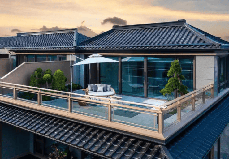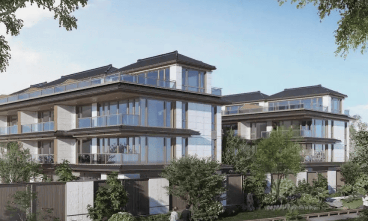 建筑品质:外立面采用伊朗蓝眼睛石材搭配铝板和三玻两腔玻璃,还运用三重飞檐坡顶的宋式形制,归家步道以 40 吨汉白玉铺就。内部装修选用意大利鱼肚白石材地面、宝格丽岩板墙面等高端材料,同时配备德国威能地暖与锅炉,品质感拉满。园区巷道还栽种了 300 多年的珊瑚阁枫树、百年紫薇树等名贵树种,进一步提升社区质感。