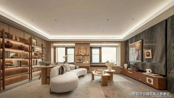 目前样板间做的是开放式书房,这让整个客厅空间大大增加。
