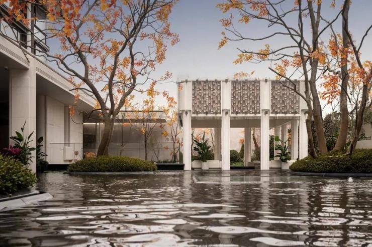 社区内部的超千方镜面主题水院,更是张江罕见的沉浸式水景体验,澄澈水面倒映着建筑与天光云影,原生丛生乌桕与回廊、浮岛相映成趣;神性洄廊借鉴了路易斯・康的美学灵感,利用黄金比例的柱列间距捕捉光影变幻,让步移景异的无界之美在此尽情演绎;