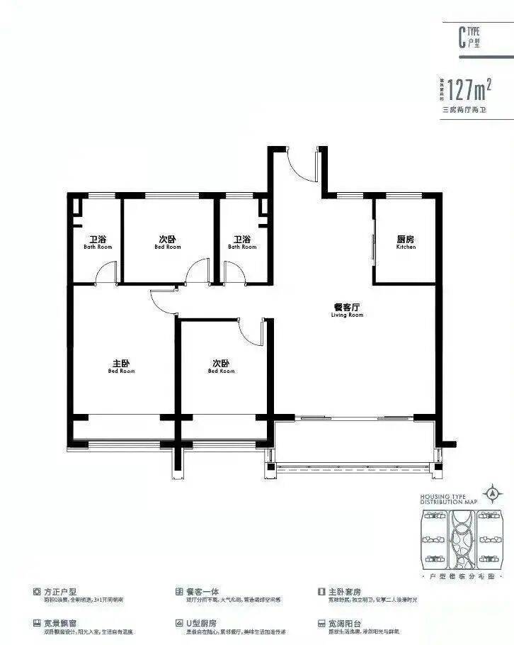 建面约127㎡3房2厅2卫