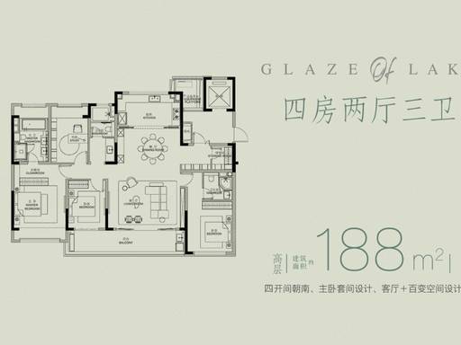 188㎡(4 房 2 厅 3 卫):经典四房,三开间朝南,双套间设计