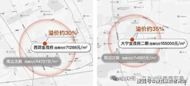 大宁金茂府二期挂牌约15.5万/㎡,周边次新整体挂牌约11.5万/㎡,金茂府有约35%溢价;