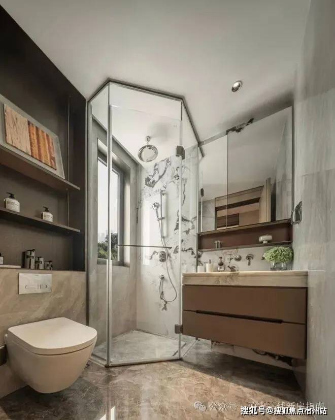 的龙头、淋浴花洒在江湾金茂府卫生间聚首,同级别新盘极少有这样的配置;
