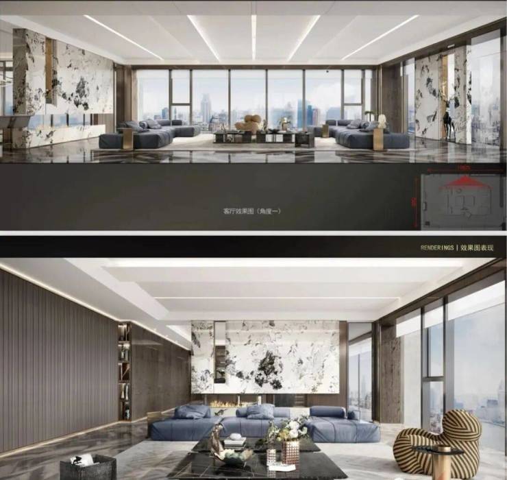 The 579㎡ apartment is 37.3 meters wide facing the south, and the 434㎡ living room is 27.6 meters wide