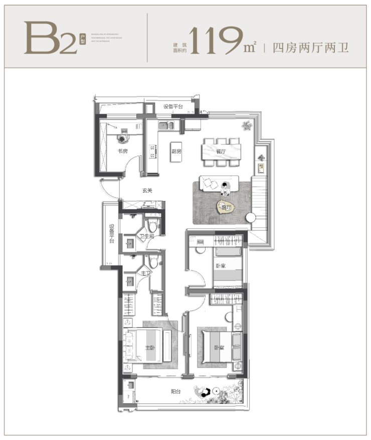 户型:约 98㎡三房 / 117㎡四房 / 119㎡寰幕边厅四房
