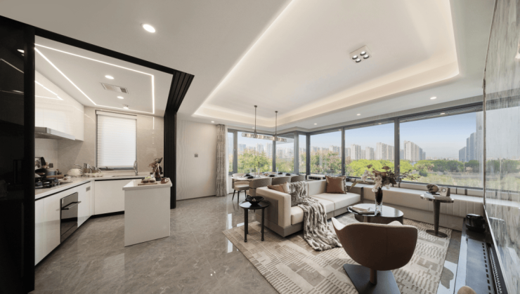 约98㎡精奢三房户型,三开间朝南、约6.4米南向双联阳台、创新S墙设计,最大化利用每一寸空间;最令人心动的是半开放式厨房设计,父母在厨房忙碌时,能随时关注客厅玩耍的孩子,让烹饪不再是“孤岛式”家务,而是家人互动的温馨时刻。