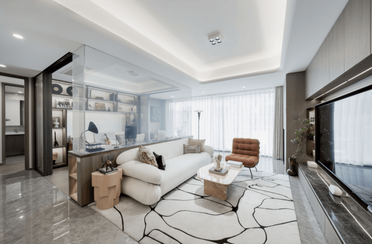 约119㎡寰幕四房是为进阶家庭量身定制“质感生活”。如果说前两个户型解决“住得下”的问题,这个户型则聚焦“住得好”:270°寰幕边厅搭配超大采光面,将园林与自然景观尽收眼底;中西双厨设计,中式满足爆炒焖炖,西式适配牛排烘焙,尊重多元生活方式;套房式主卧配备独立卫浴与双侧分区衣帽间,细节之处尽显对品质生活的极致追求。