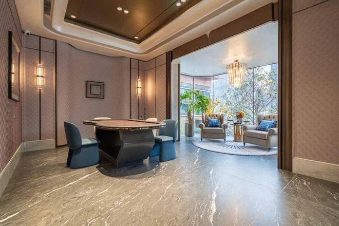 其园林设计突破常规,通过下沉式庭院营造出丰富的立体景观层次,融合叠水、小桥、挑空露台与隐谧会客区,涵盖恒温泳池、女王厅、健身房、室内高尔夫球馆、私宴厅等12大功能区域,增强了空间的互动与趣味。