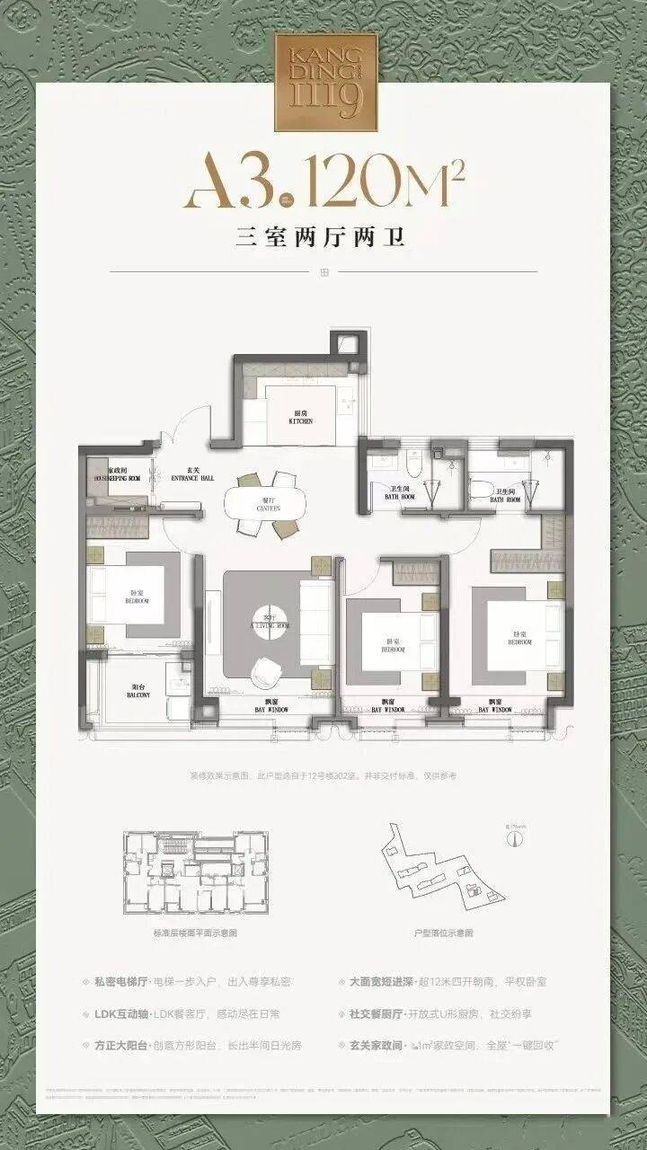 康定壹拾玖同时在现场实体楼栋打造了2个120㎡和1个193㎡样板间。